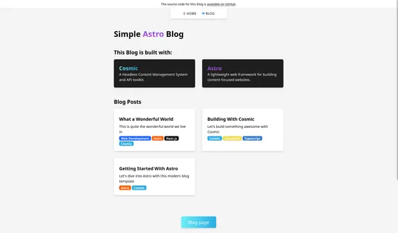 Section intitulée « Créer un blog avec Astro et Cosmic »Vous pouvez gérer le contenu de votre blog Astro à l’aide de Cosmic et créer des webhooks pour redéployer automatiquement votre site web lorsque vous mettez à jour ou ajoutez du nouveau contenu.